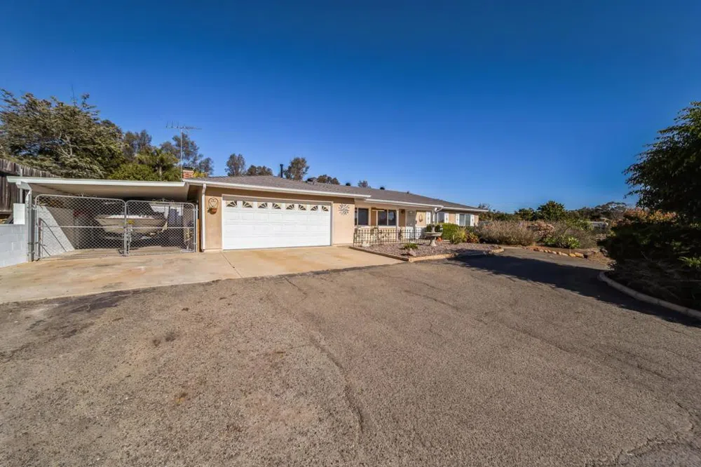 Charming ranch style 3 bedroom 2 bath home situated on a 3/4-acre lot in Fallbrook. Large kitchen with quartz counter tops. Spacious Livingroom & a family room w/ fireplace. Dual sink in bathroom. 2 car garage along with a carport for additional parking. Large shaded patio approx. 20x34ft perfect for entertaining. Gated side entrance for RV parking & additional toys. Large yard contains mature fruit trees, 3 sheds & a dog run. Set on a quiet street in a desirable neighborhood. Within minutes to Fallbrook Main Ave & shopping centers. Come see this well loved & maintained home!