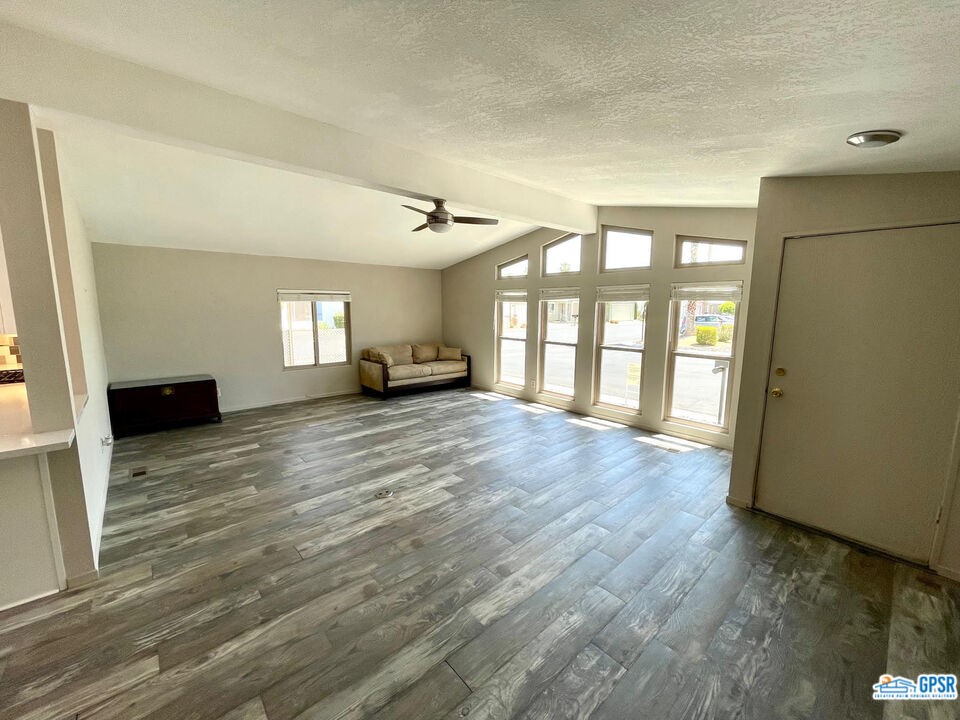 Bright and fully modernized manufactured home at The Canyon, a resort style 55+ community in Cathedral City. Renovated in 2020 with all new energy efficient windows, engineered wood plank flooring, quartz countertops, stainless appliances, tankless water heater, LED can lighting and modern reconfiguration with open kitchen space and enhanced master bath with walk in shower. Solar tube adds natural light to the already sunny spaces. Kitchen has new soft close cabinetry, greenhouse window and pendant lighting. Clerestory brings extra light into the owners suite. Brand new carpet in the bedrooms. Large carport and patio accommodates an outdoor lifestyle. Located on a corner lot with full southeast exposure and unobstructed views of the clubhouse, tennis facilities and surrounding mountains and greenery. The Canyon is a highly social community with a multitude of amenities and activities. Two pools, spa, fitness center and clubhouse all just steps away. Gated community with close proximity to shopping, dining, golf and entertainment.