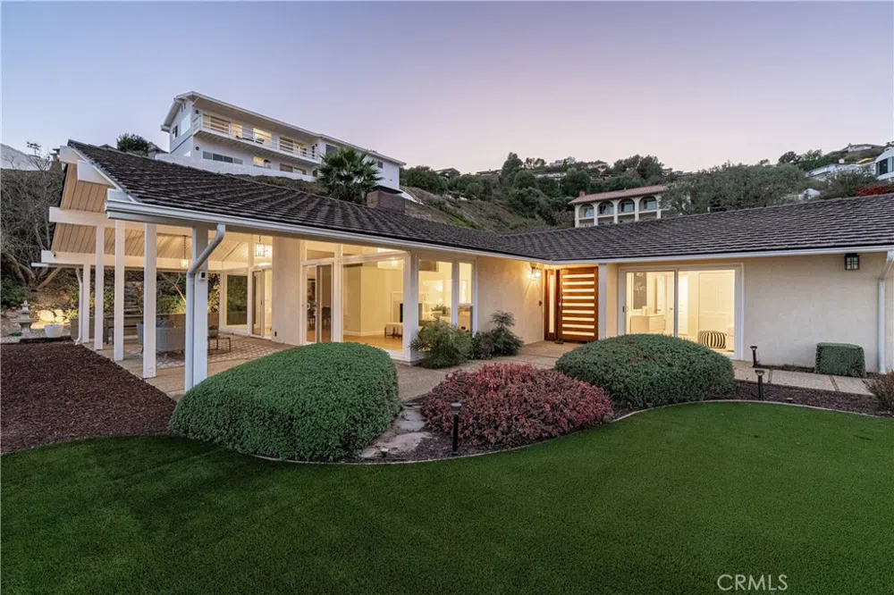 Welcome to 2952 Crownview Drive, an exquisite mid-century modern home with sweeping views of the harbor, ocean, and coastline along with evening views of the sparkling city lights. As you step inside, you'll be greeted by a large living room featuring a cozy fireplace, gleaming hardwood floors, and vaulted ceilings that create an inviting and open atmosphere. The view side of the home features large floor to ceiling windows to enhance the view from all entertaining areas. Situated on a generous lot, the floor plan is thoughtfully designed for seamless indoor and outdoor living, making it perfect for both entertaining and everyday comfort. The front yard boasts a spacious patio area, perfect for al fresco dining. The modern kitchen is equipped with stainless steel appliances and marble counters, ideal for preparing culinary delights. Adjacent to the kitchen, the dining area offers picturesque views, enhancing your dining experience. The expansive master suite provides a serene retreat, complete with ample closet space and a luxurious en-suite bathroom with large walk in shower, dual sinks and soaking tub. This modern and energy-efficient home is equipped with built-in electric vehicle (EV) chargers and high-efficiency solar panels, providing sustainable and cost-effective energy. Designed for both comfort and energy independence, the house seamlessly integrates renewable technology with contemporary living. Located in a prestigious neighborhood, this home provides convenient access to top-rated schools, shopping centers, dining establishments, and recreational facilities. Experience the best of Southern California living in this exceptional property.